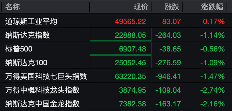 好意思股开盘,三大指数涨跌不一。纳斯达克指数、标普500指数开盘后执续走低,科技股普跌。中概股跌幅扩大,完毕发稿,纳斯达克中国金龙指数跌超2%。