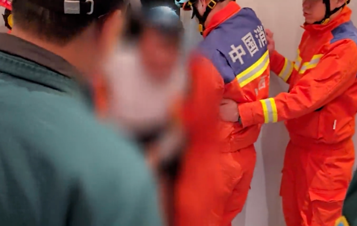 到手把电梯门掀开将其救出