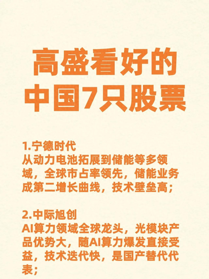 最近刷各类财经内容,无论是短视频照旧图文帖子,到处齐在传“高盛看好的7只中国股票”,驳倒区里清一色齐是求竣工名单、问能不可闭眼买入的一又友。说真话,我看到这种场景,既通晓全球的想法,又忍不住有点紧张。通晓的是,在市集里摸爬滚打的普通东谈主,齐想找个靠谱的投资地方,随着国际顶级投行的想路走,总比我方瞎蒙乱撞、追涨杀跌要强;紧张的是,太多东谈主只盯着那一串股票代码,一门心想想着抄功课,却根柢没想显明,高盛为什么会看好这些标的?它们能被外资盯上的中枢底气到底在哪?普通东谈主随着外资买股票,到底该遁入哪些坑?
