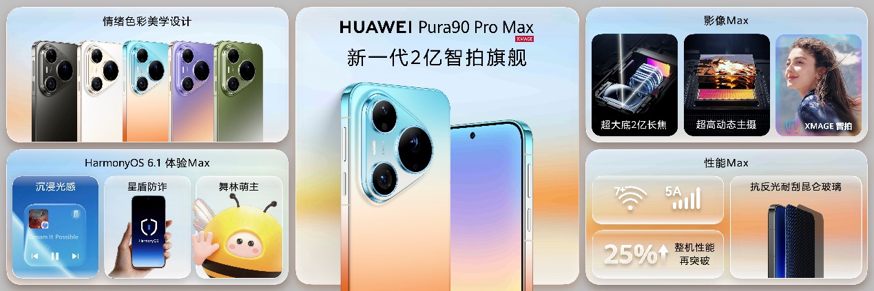 影像边界,华为Pura 90系列从规格跳跃迈向贤达照相新纪元,通过软硬芯AI的无缺交融,开启智拍影像新时期。华为Pura 90 Pro Max搭载业界高感光超大底2亿长焦,不管长焦拍摄还是长进放大,画面中的细节齐能纤毫毕现,还可实现超长焦20倍光学品性的高清视频录制,树立了长焦画质的新标杆。全新升级的XMAGE智拍,带来遮掩拍摄到后期的全链路贤达影像决策。从AI接济构图、东谈主像姿势推选,到个性色卡与智能修图,让用户无需繁琐调试,就能粗疏拍出氛围感全齐的大片。