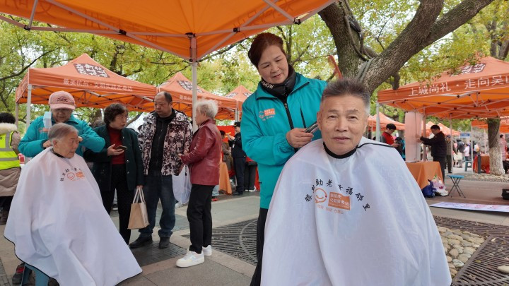 下昼2点,张能庆公益办事站出摊,只过了半小时,剃头摊位就理睬了25位老东谈主。