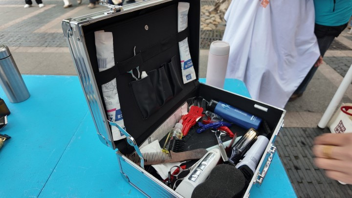 每位志愿者的桌前齐放着一套剃头器用,幸运彩app官方下载剪刀、推刀、海绵等。每东谈主的剃头作风也有共通点:要剪得快、剪得干净。