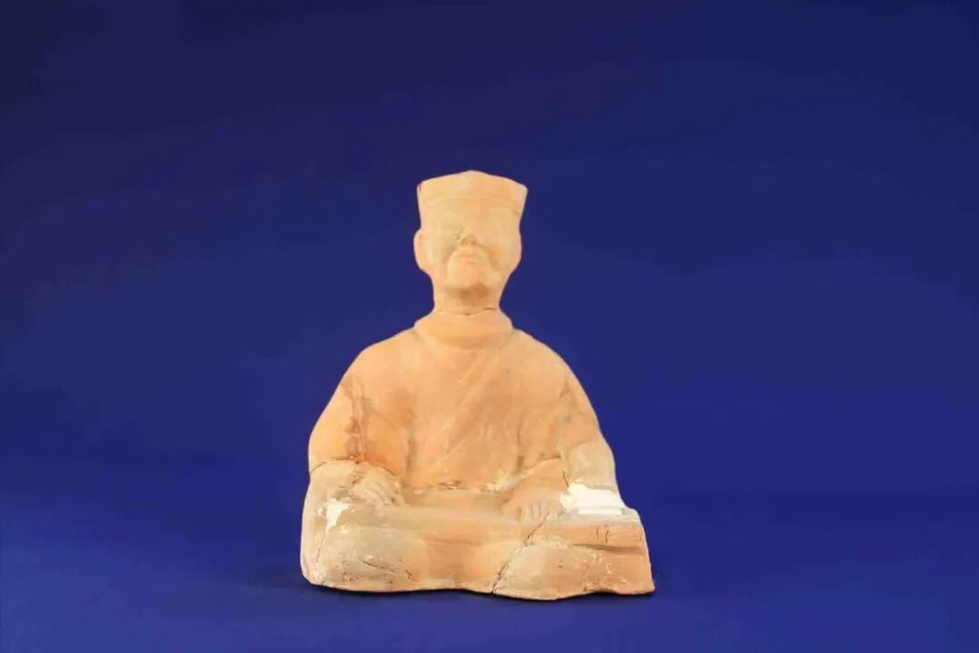 三国蜀抚琴红陶俑。来源/陇南市武都区博物馆