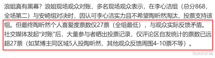 按理来说,陶昕然的票数概况应该更高,可不知那边出现问题,也曾成了全组最低。