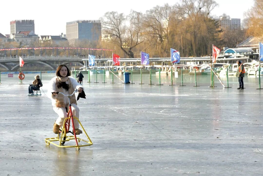 什刹海冰场看成京城最具东说念主气的“老牌”冰场之一,已于1月10日认真买卖。本年的什刹海冰雪嘉年华以“飞马踏冰”为主题,进口说念旗、围栏灯笼均融入了骏马图案,冰面上还设有蓝色飞马雕琢供搭客打卡,节日氛围感拉满。单东说念主冰车、双东说念主冰车、冰上自行车等多种举止一应俱全。