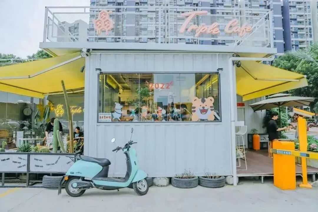 在南沙,说到集装箱外形谋略的夏威夷风情咖啡馆,那即是Triple cafe了!谁会猜度在泊车场里,几个白色集装箱组合成的小屋,确实是一间咖啡店!