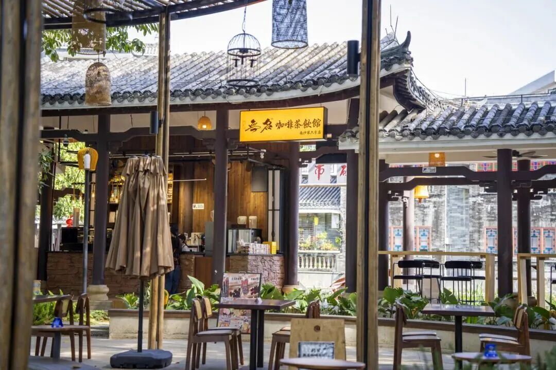 大榕树下,水乡船埠旁。半室外空间谋略,品的不仅仅咖啡,更是水乡极度的韵味——此处夜景尤为漂亮。
