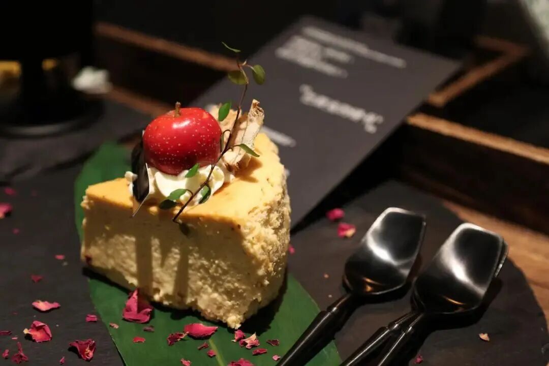 新录取茶铺,暗玄色系装修搭配绿植。提供新录取茶聚套餐和特质鸡尾酒,还有厚味的巴斯克蛋糕。