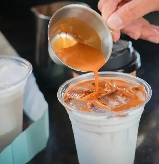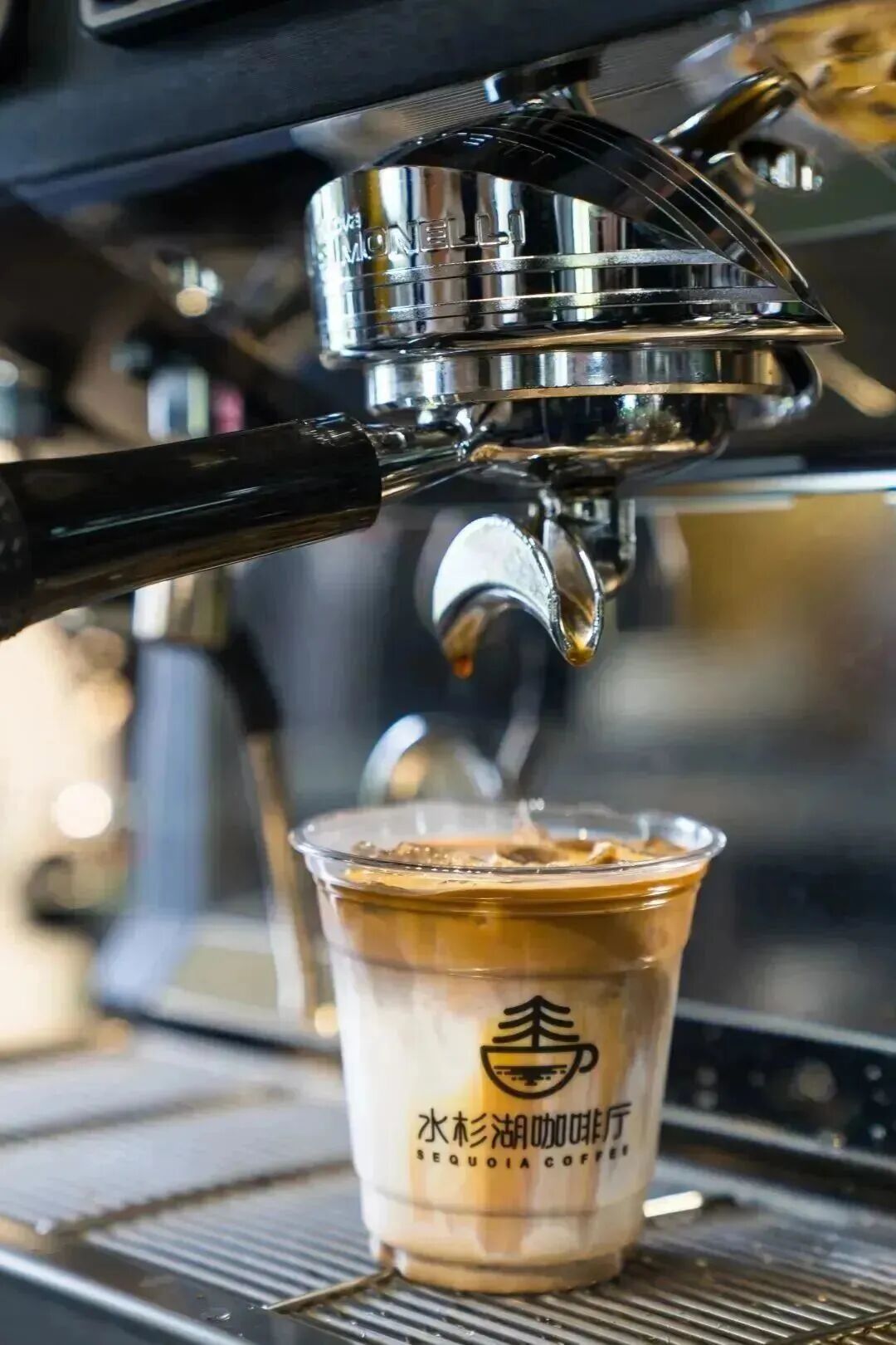 店内咖啡制作区,整皆摆放着种种工具、调料以及装满咖啡豆的罐子,弎贝拿铁、弎贝冰川、卡布奇诺等经典咖啡品类一应俱全,还有好意思式(琅琊)、好意思式(兰陵)等特质爆款。