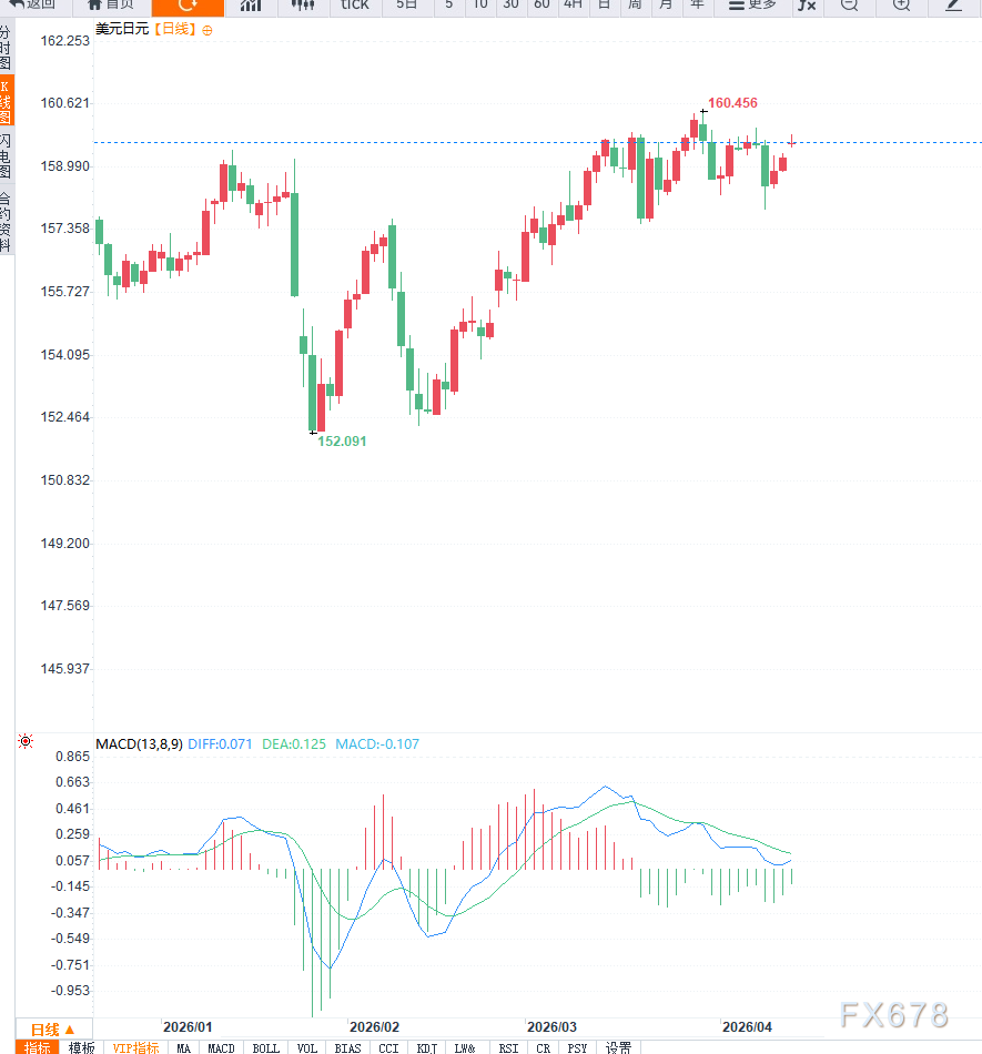 从本事面来看,日线结构流露好意思元兑日元保管上行趋势,前期在158.20隔邻获取相沿后反弹,证据该区域为进击相沿带。刻下价钱仍开动在主要均线系统上方,标明中期趋势保抓齐备。动能场地方面,MACD抓续朝上发散,RSI保管在中高位区间,流露上升动能仍然存在,但已接近过失阻力区域。从4小时周期来看,汇价短线呈现颠簸上行结构,但在160关隘隔邻屡次受阻,流露该区域抛压显然。若价钱巧合灵验冲破并站稳该水平,则有望进一步上探161.50以致更高区域;反之,若抓续受阻,则可能回撤至158.60及158.20相沿区域进行整理。合座来看,短期走势偏强,但高位颠簸特征显然。