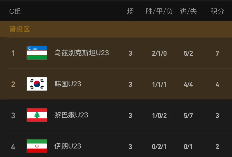 行为本届亚洲杯公认的“去世之组”,C组3轮战罢,乌兹别克斯坦2胜1平积7分赢得小组头名,而韩国队1胜1平1负积4分名次小组第2,两队联袂晋级。