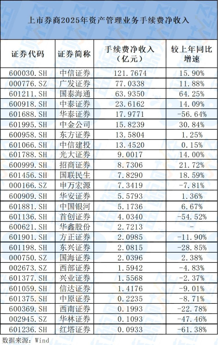 中小券商资管业务发展则较为疲软,开云sports西南证券(0.2亿元)、东兴证券(2.08亿元)、华林证券(0.11亿元)、首创证券(4.03亿元)、红塔证券(0.09亿元)2025年资管业务收入均下滑超20%。其中,西南证券、华林证券、红塔证券的手续费净收入不及2000万,分袂较上年下滑22.78%、47.46%、61.38%,压力突显。