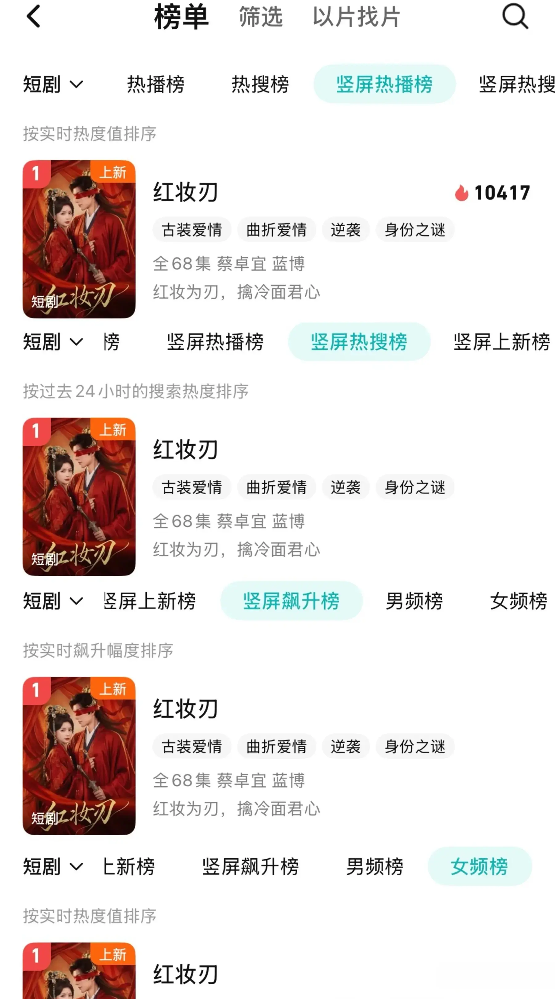 热度冲到10417,今日就横扫竖屏热播榜、热搜榜、飙升榜和女频榜四个TOP1,你敢信?这数据比不少S+古偶首播还狠。剧情开场就拉满:叶清凌——叶家阿谁没东说念主答理的庶女,一纸婚书告成送进阴曹,替姐姐嫁去给快气绝的世子冲喜。大婚当晚,世子气绝,她差点被拖去给长公主陪葬。换谁谁齐崩,但她没哭天抢地,反而盯上了阿谁冷得像冰窖的小叔卫珩止。