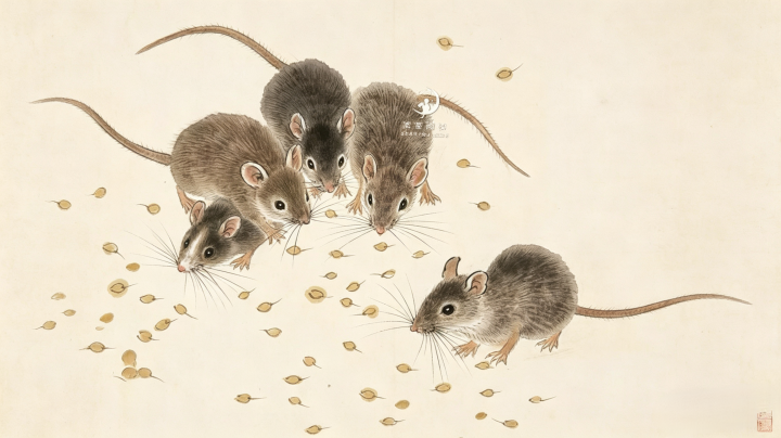 生肖鼠,虽形骸眇小,却在生肖中位列首位,藏着犀利与果决的生计聪敏。鼠天性灵动,善于应变,人命力昌盛,民间视其为聚财、活络的象征。旧时民俗中,鼠亦与仓廪富余关连,有“鼠囤粮仓,家过剩粮”之说,代表机巧聪敏、生生箝制。它虽不张扬,却凭着明锐与坚贞,在生肖文化中占据着不成替代的位置。